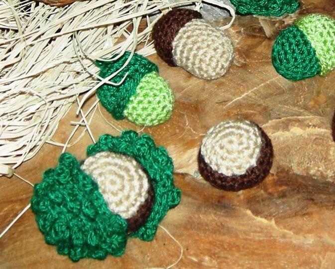 Mit dieser Häkelanleitung kannst Du Dir ganz schnell ganz viele eigene *Kastanien und Eicheln* häkeln.