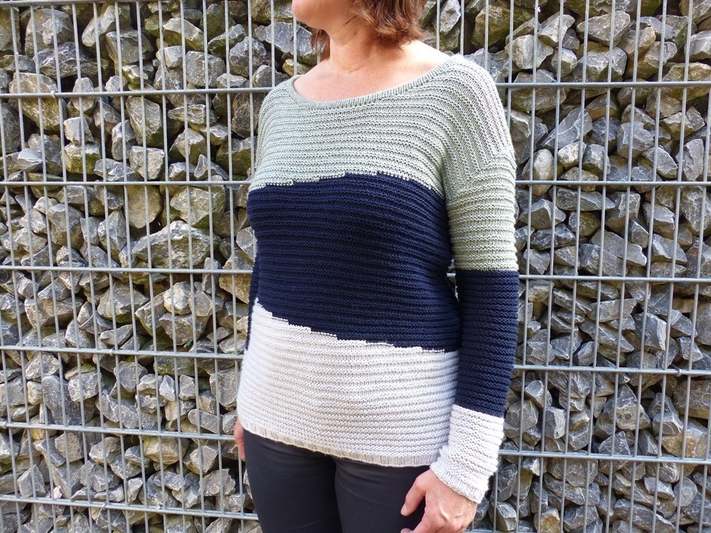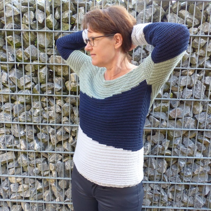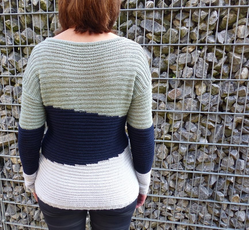 Du kannst selbst entscheiden aus welchen Farben und aus welcher Wolle du den Pullover nachstricken möchtest. Es ist egal ob du ein Verlaufsgarn, ein- oder zweifarbiges Garn oder schon Wolle verwendest, die Pullover liegt voll im Trend und ist super zu kombinieren.
