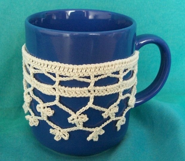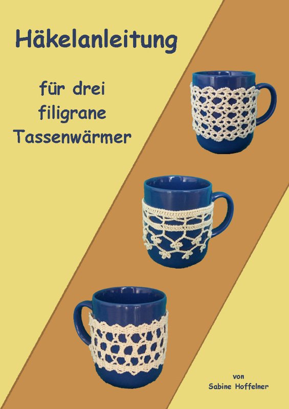 In diesem E-Book finden Sie die Anleitungen für die auf dem Cover abgebildeten drei Tassenhüllen. Zu allen Modellen gibt es jeweils eine übersichtliche Häkelschrift. Außerdem wird alles Schritt für Schritt genau erklärt. Die Tassenwärmer habe ich aus einem beigen Baumwollhäkelgarn der Stärke 10 mit einer 1,75er Nadel gearbeitet.