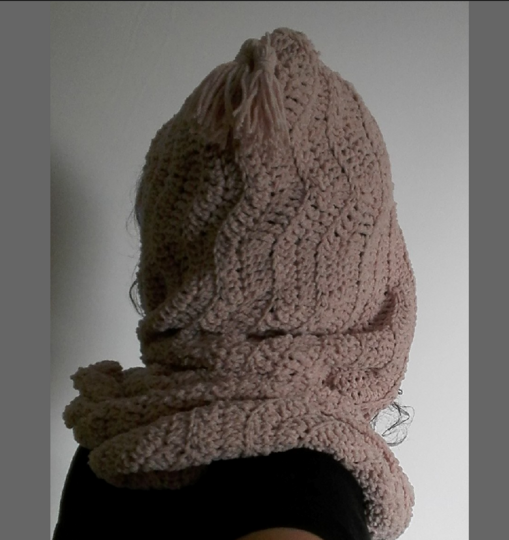 Häkelanleitung Kapuzenloop „weiche Welle“ Scoodie Troddel