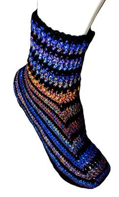 Keine Lust auf Fersen häkeln? Diese Socke kommt ohne aus und wird an einem Stück gehäkelt.
