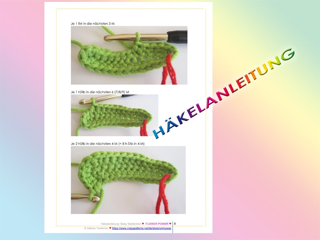 ♥ Wenn Du zu den Baby Stiefelchen FLOWER POWER passenden Fäustlinge häkeln willst: Die Häkelanleitung zu den Baby Fäustlingen FLOWER POWER findest Du in meinem Shop!