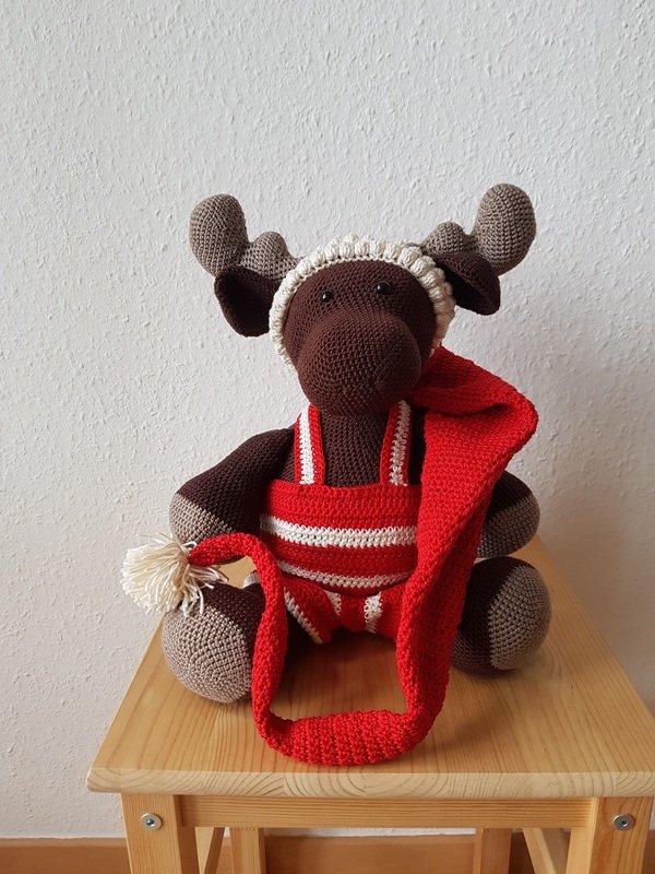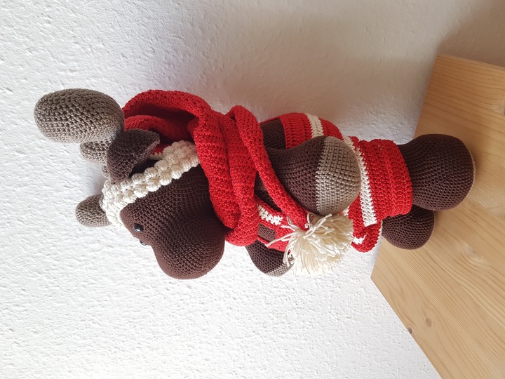 Die Anleitung für den Elch ist NICHT enthalten. Diese ist hier erhältlich: https://www.crazypatterns.net/de/items/30303/riesen-elch-s-ren-mit-schal-30-cm-gross