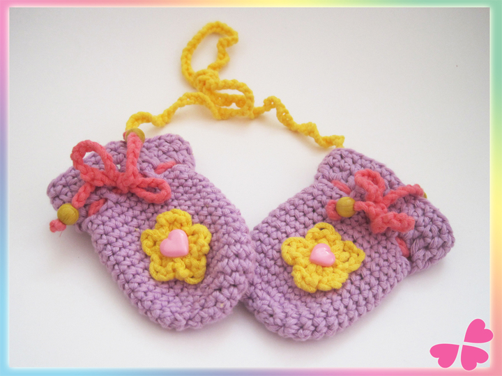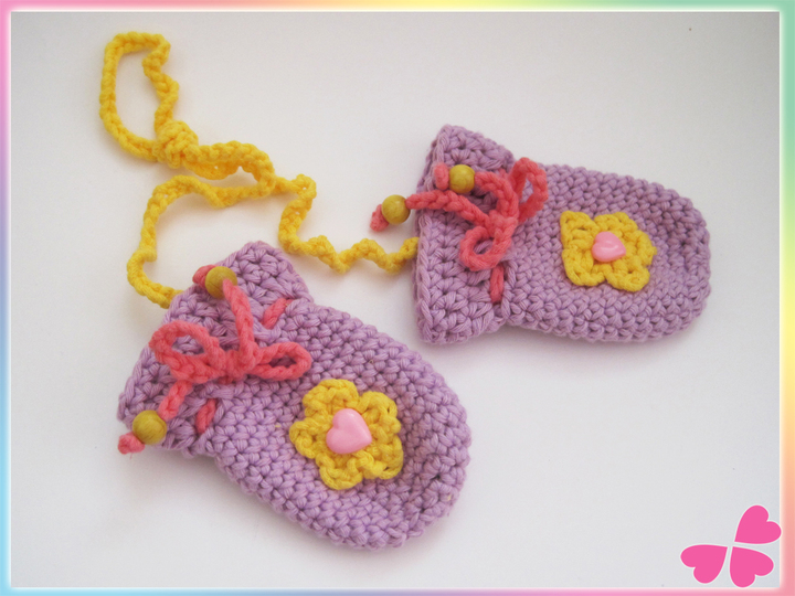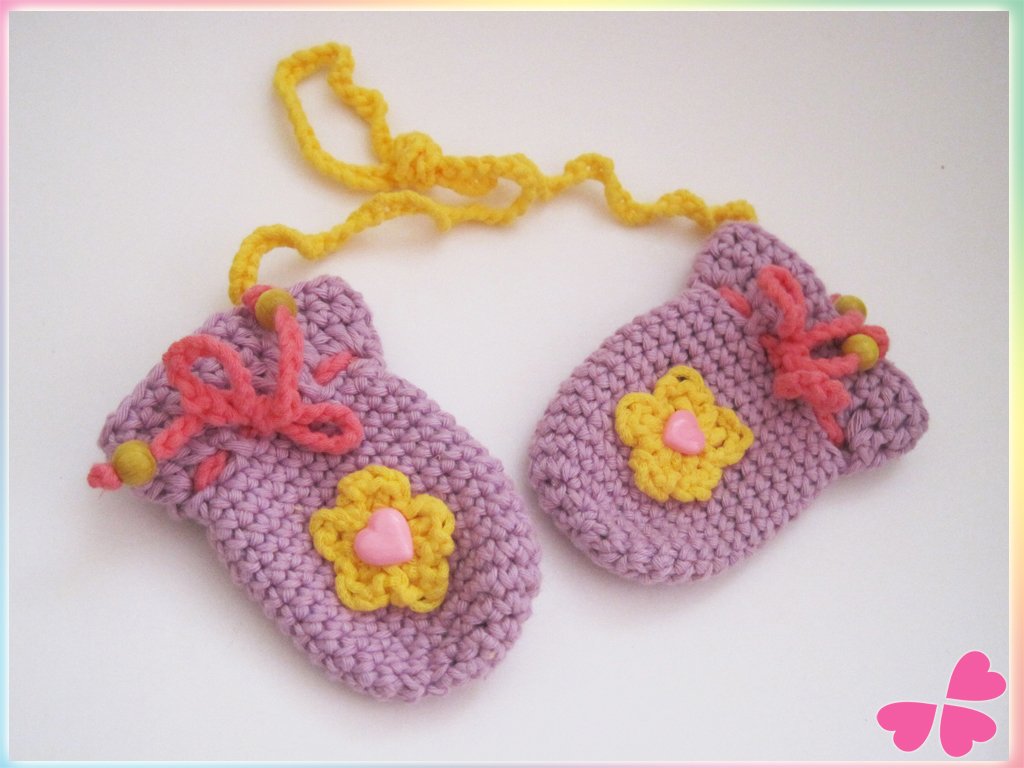 Mit Nadelstärke 5 sind die Baby Fäustlinge mit süßer Häkelblümchen schnell mal selbst gehäkelt!