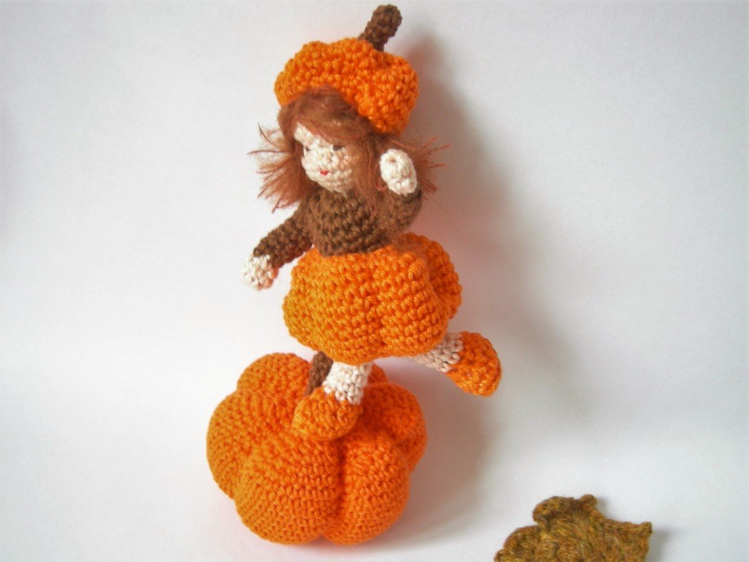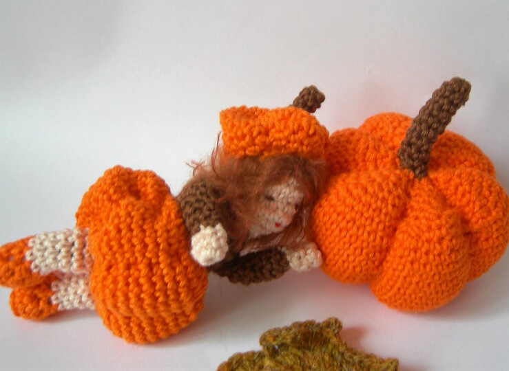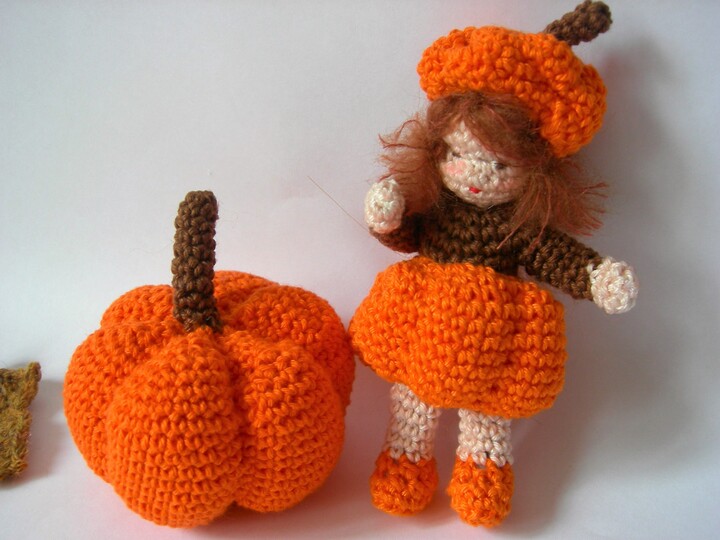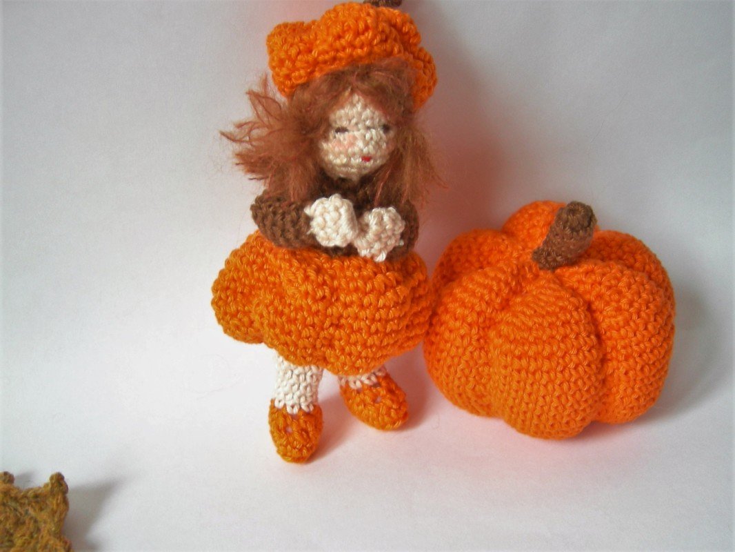 Der Herbst kommt! Das ist die schönste Zeit für dasKürbiskind! Mit seinem Kleidchen in den Herbstfarben orange und braun passt es sich perfekt an die herbstliche Umgebung an.