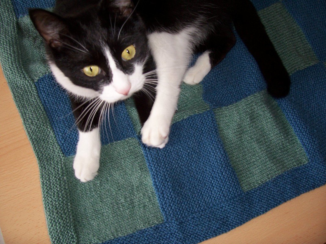 Die abgebildete Decke wurde mit je 100 g Acrylgarn in Blau und Grün mit zwei Stricknadeln der Größe 4 hergestellt. Nach Geschmack können Sie die Farben oder die Wollqualität natürlich auch Ihren eigenen Vorstellungen entsprechend verändern. Für die Mäuse benötigen Sie ein Knäuel oder einen großzügigen Rest graues Garn.