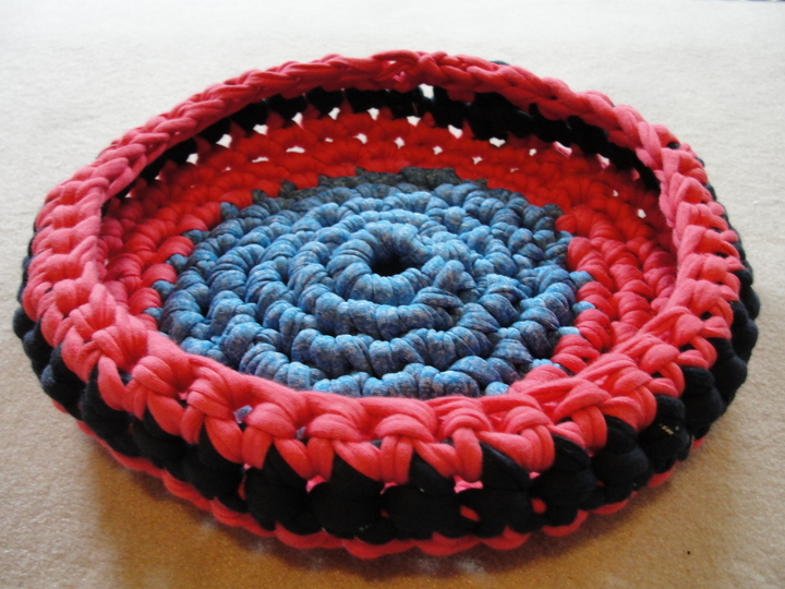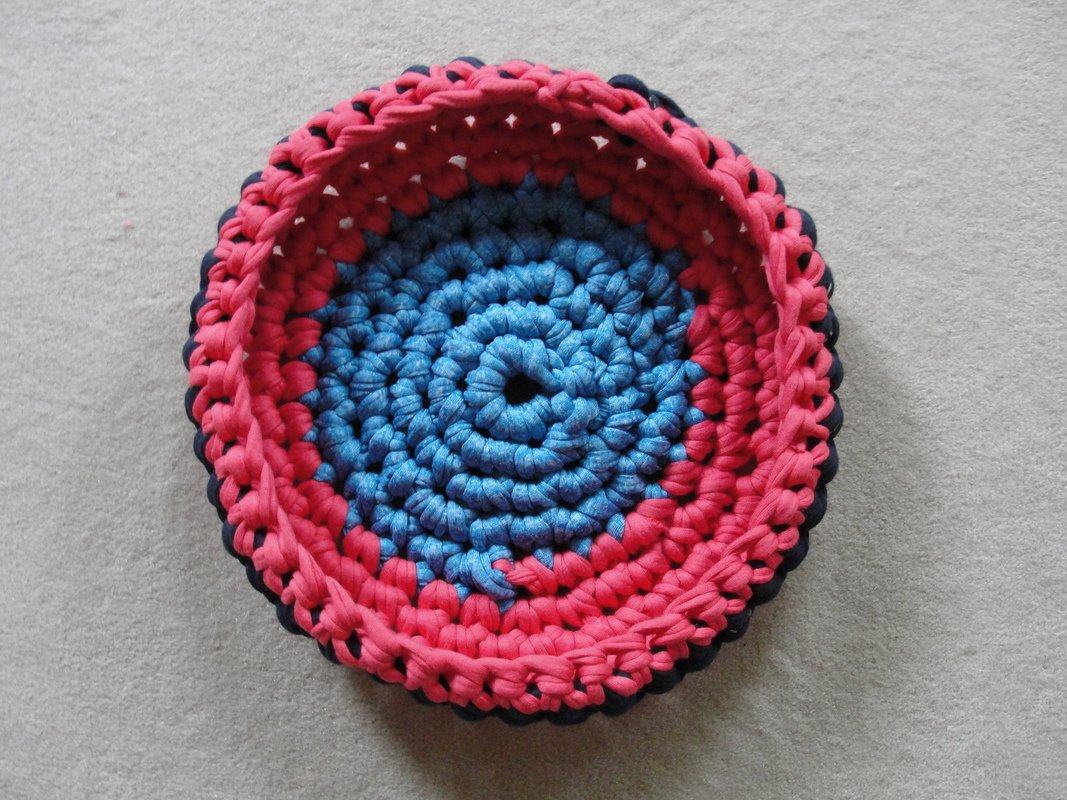Diese Anleitung zeigt dir, wie du runde Körbchen / Utensilos aus Textilgarn häkeln kannst.