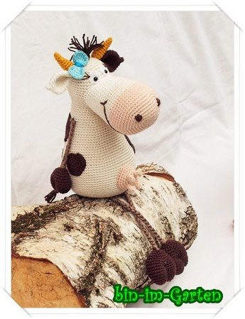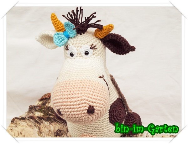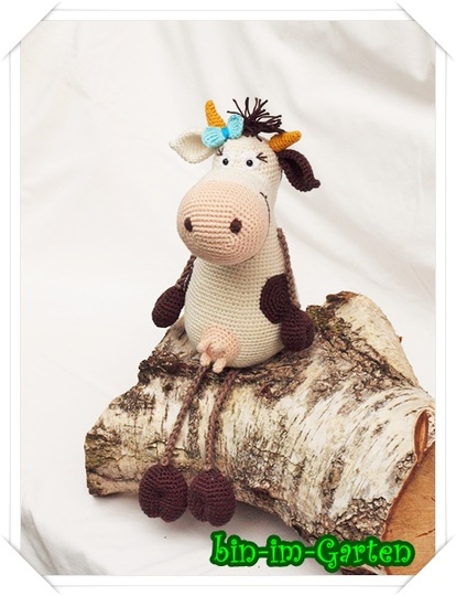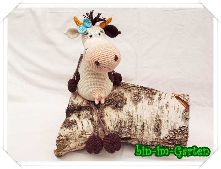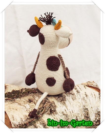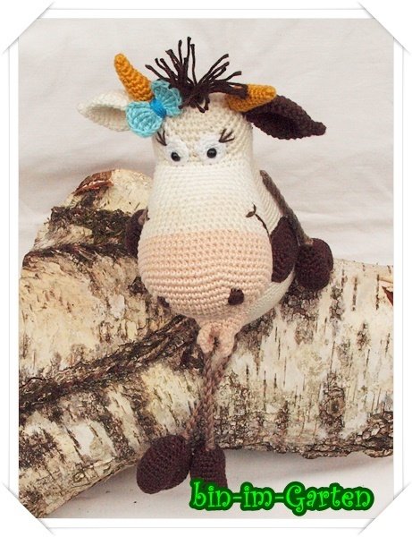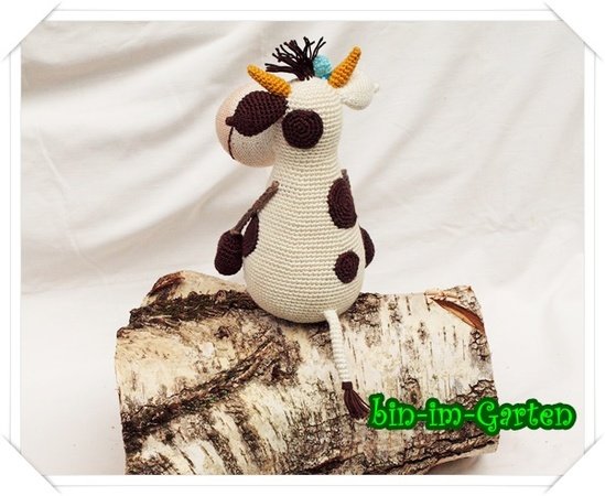 Die Kuh wird sitzend ca. 24 cm groß (mit Catania-Wolle).