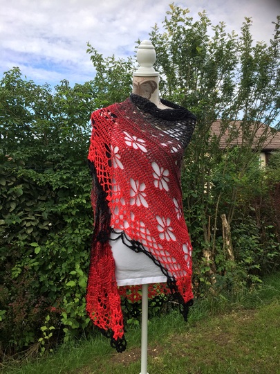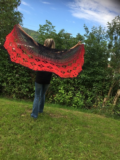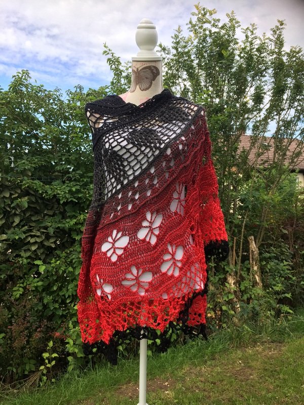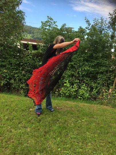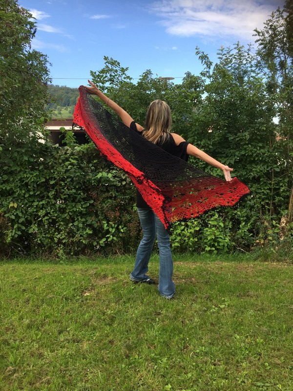 Dieses Tuch ist einfach wunderschön. Es hat die Maße von 2,00 x 1,05 m. Du kannst dich super darin einkuscheln.