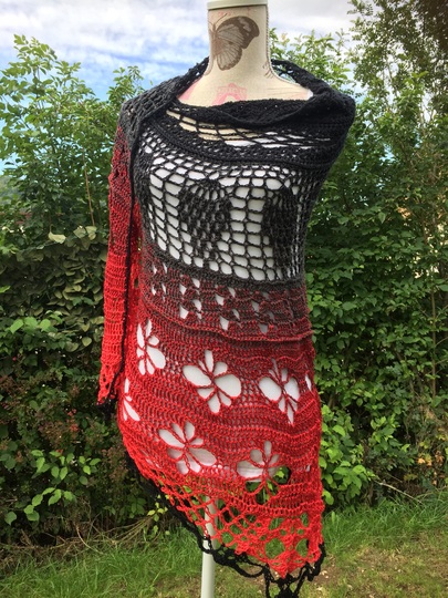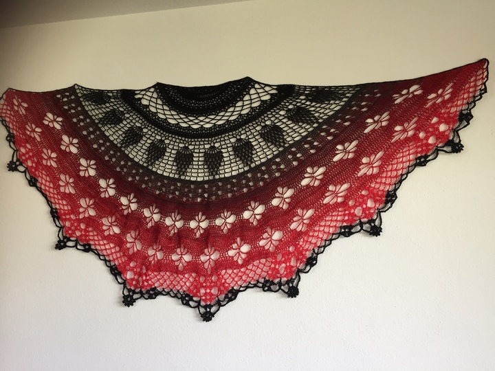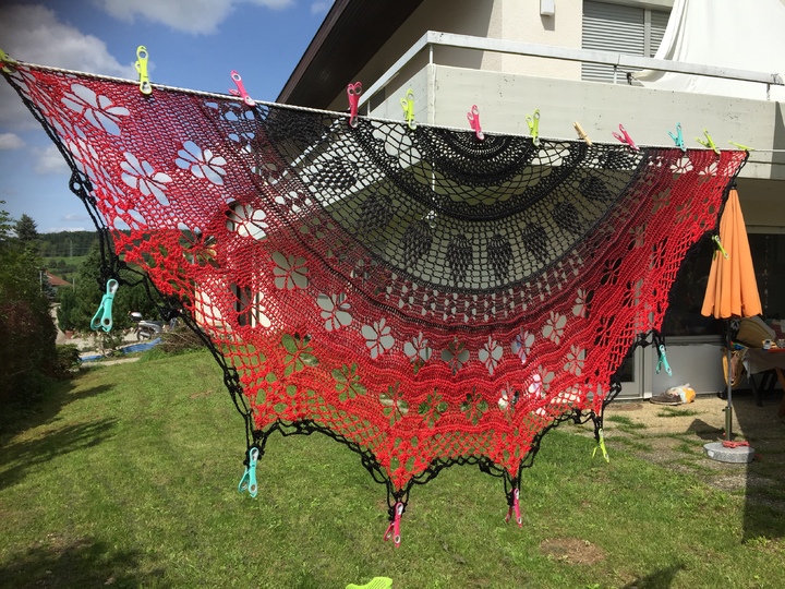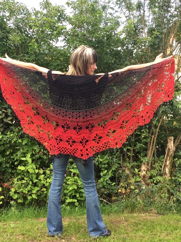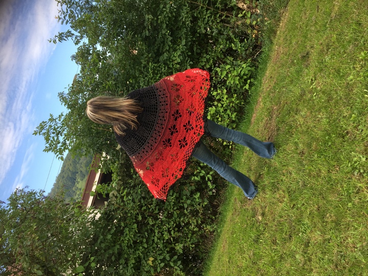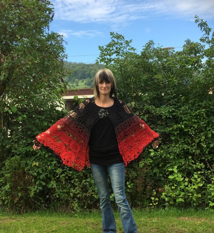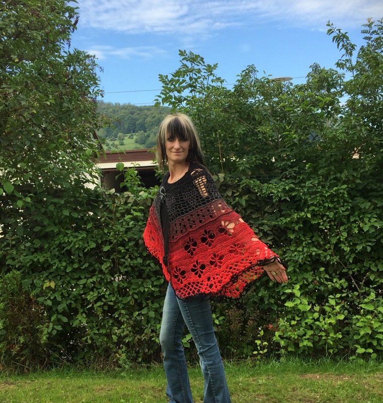 Material: Wollverbrauch ca. 1100 m, super geeignet für Farbverlaufsgarn, ich empfehle ein 4 oder 5 fädriges Garn und die Nadelstärke 4 - 5. Wenn du mit kleinerer Nadestärke arbeitest wird natürlich auch dein Ergebnis kleiner.