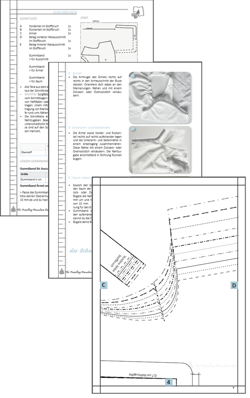• eine ausführliche Nähbeschreibung mit Bildern, die die einzelnen Nähschritte besser veranschaulichen