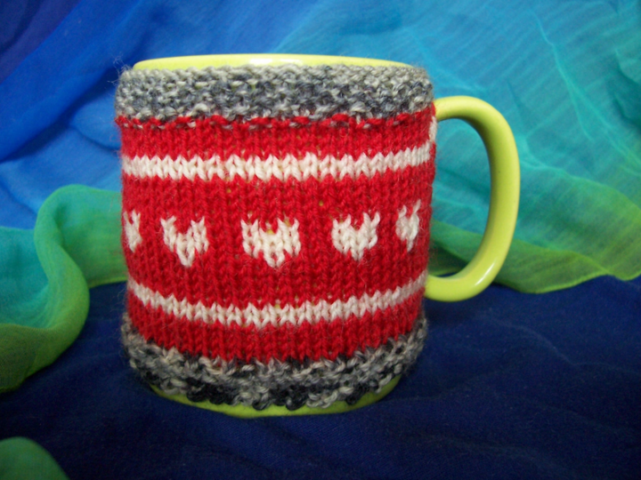 Mit dieser Strickanleitung können Sie drei verschiedene Tassenhüllen nacharbeiten. Ich habe einen Standard-Kaffeebecher mit einer Höhe von neun Zentimetern und einem Durchmesser von etwa acht Zentimetern benutzt. Die Anleitungen lassen sich aber auch an andere Maße anpassen.