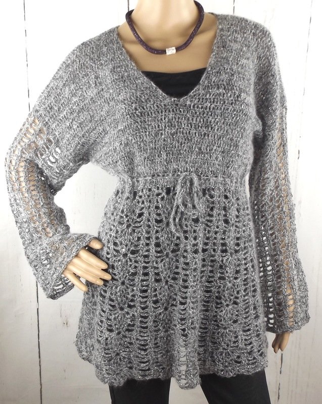 Dieser wunderschöne Pullover im Tunika - Style ist leicht zu häkeln und schmeichelt jeder Figur. Der besondere Schnitt und der V - Ausschnitt kaschieren unsere Rundungen und zaubern eine tolle Silhouette! Der Pulli ist ein absolutes Kombi - Talent und sieht nicht nur cool zur Jeans aus, sondern ist auch sehr chic zu Leggings und engen Röcken.