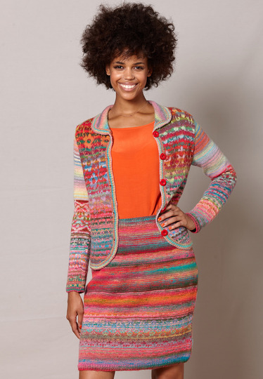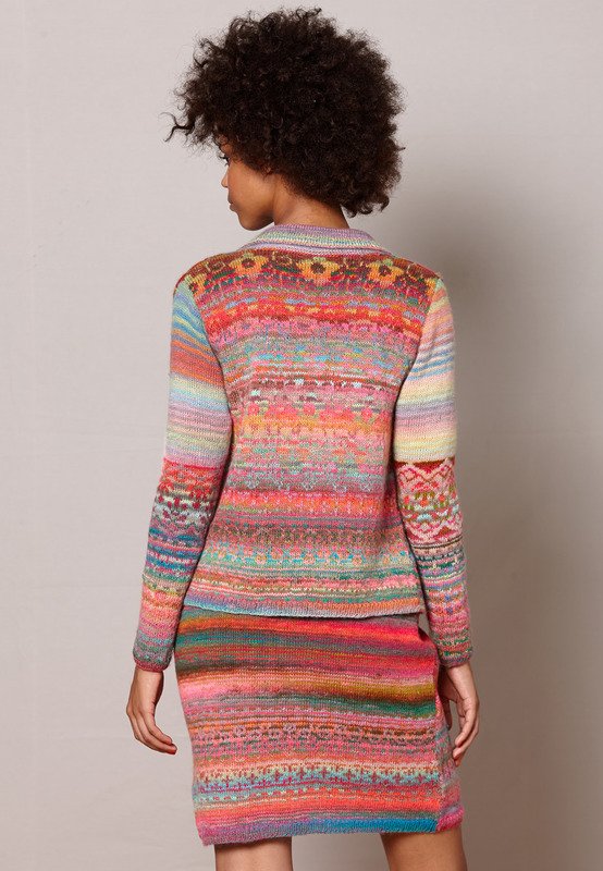 Die Welt ist bunt, genau wie unser neues Lieblingskostüm. Und dafür sorgen Farbverlaufgarne kombiniert mit Jacquards - sie bringen diese fantasievolle Optik zum Vorschein.