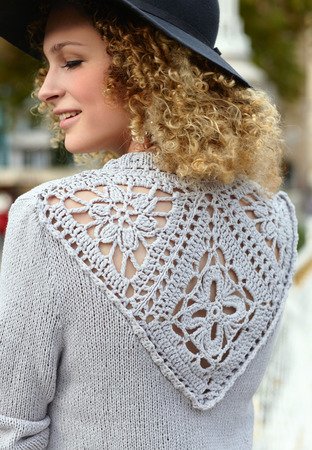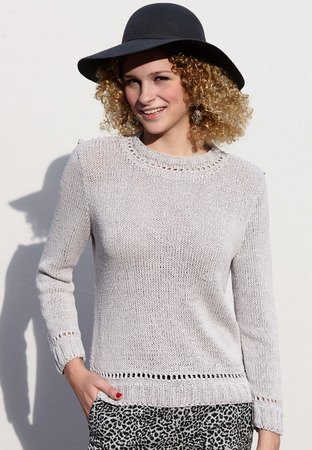 Häkelspitze im Rückenteil, zarte Lochmuster an den Saumkanten schenken diesem Pullover einen romantischen Touch. Für die elegante Note sorgt das edle Seidengarn.