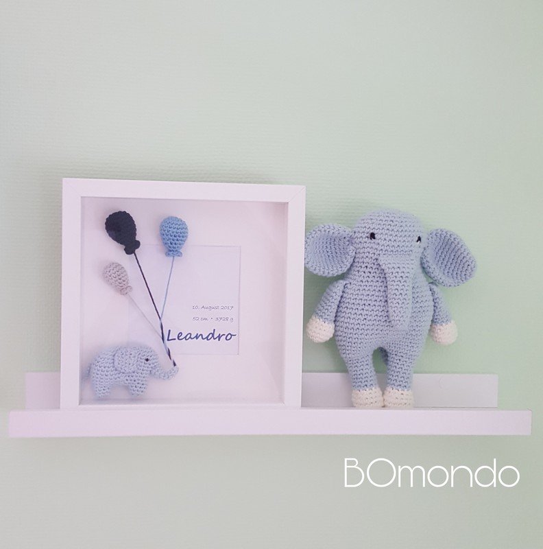 Der kleine Elefant ist vielseitig einsetzbar. Individualisiere einen Bilderrahmen, kreiere eine Schnullekette/Kinderwagenkette oder nutze ihn als Taschenbaumler.