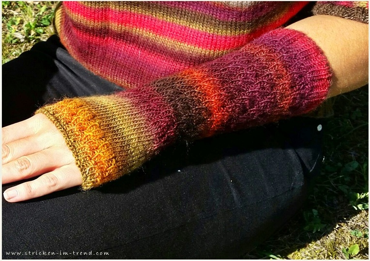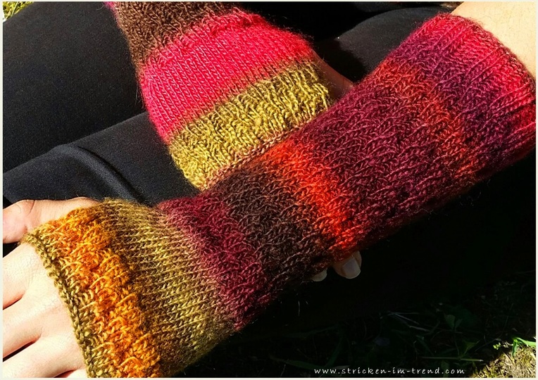 Die Länge der fertigen Stulpen beträgt in etwa 26,5 cm.