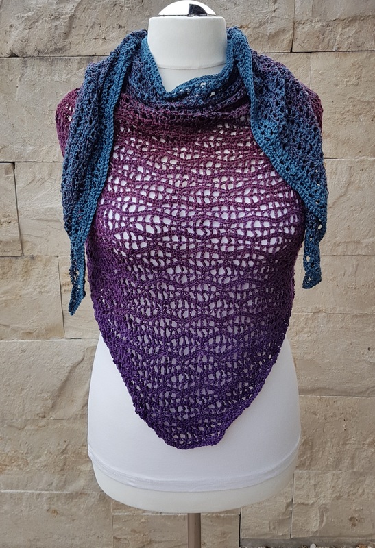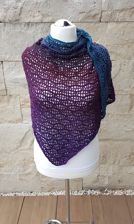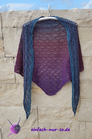 Gehäkelt wurde es mit ca. 900m, 4 fädigen Farbverlaufsgarn und einer Häkelnadel der Stärke 4.
