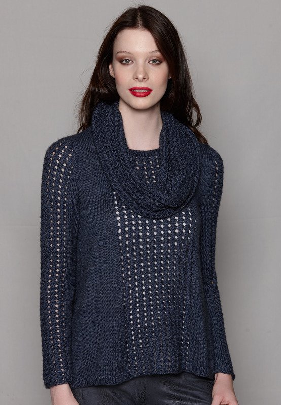 Zu warm oder zu kühl? Angesagtes Kombi-Team für jede Temperatur: ein Lochmuster-Pulli plus Loop, der lang genug ist, um ihn locker zwei- bis dreimal um den Hals zu drapieren.