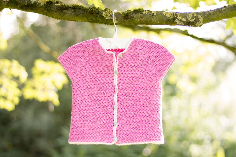 Du kannst das Jäckchen häkeln für Mädchen von Geburt an bis 5 Jahre!