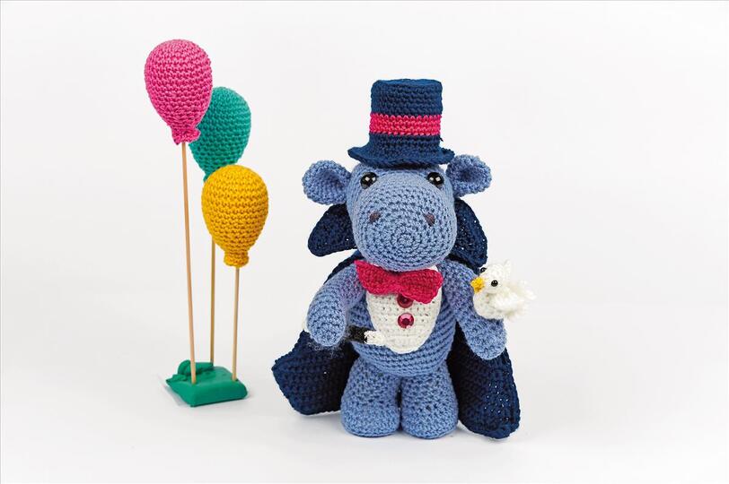Ein echter Zauberer betritt die Arena niemals ohne seinen magischen Hut, den Zylinder. Und aus diesem zaubert Hippodini, das Nilpferd, nach klassischer Art ein weißes Kaninchen! Die weiße Taube ist mit Hilfe eines Magneten an Hippodinis Arm befestigt.