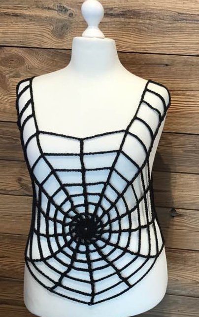 Das raffinierte Spinnennetz-Shirt besteht aus vielem Luftmaschen die sich mit dreifachen Stäbchen recht flott zu einem Shirt formen.