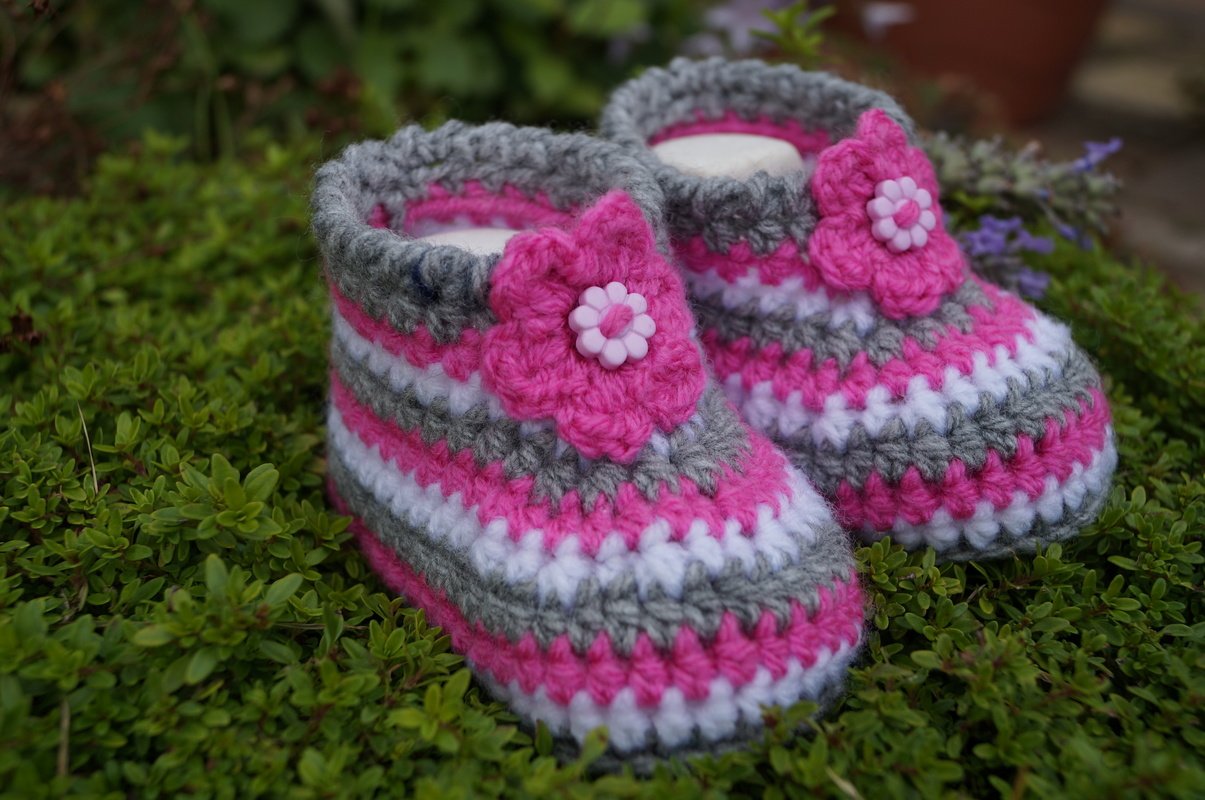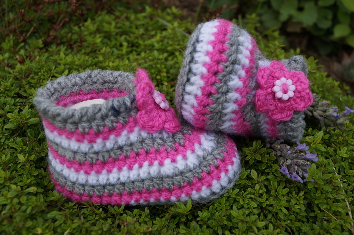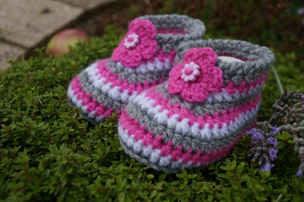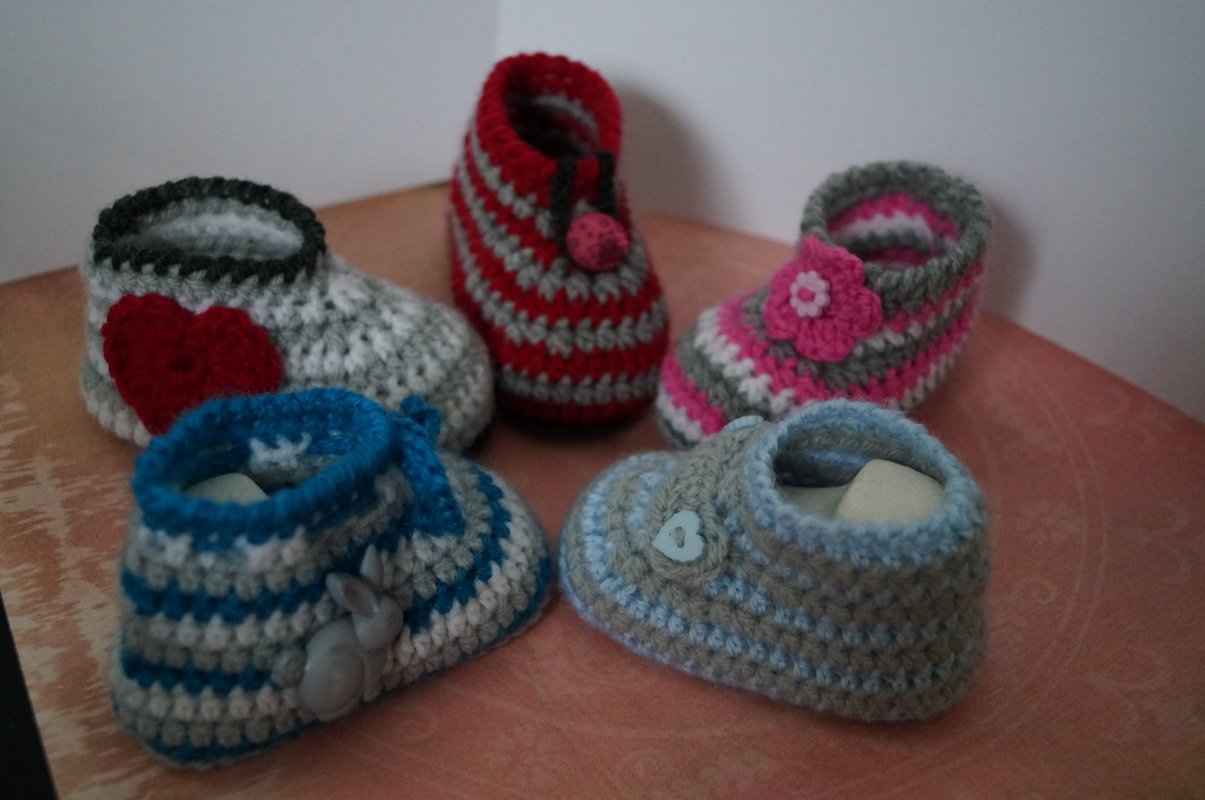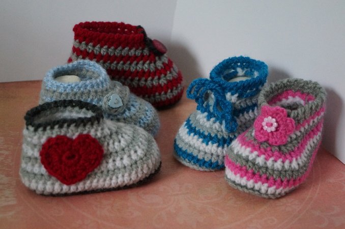 Die kleinen Schuhe sind durch die unterschiedlichen Dekos sowohl für Jungs wie auch für kleine Mädchen geeignet. Sie können mal frech, mal romantisch oder ganz klassisch gehäkelt werden. Je nach verwendeter Farbe wird es immer wieder ein neues kleines Unikat geben.