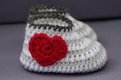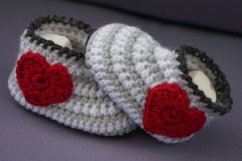 Verziert werden können die kleinen Schuhe mit gehäkelten Herzchen oder Blümchen, mit einem geknöpften Riegel oder mit einem Knopfverschluss oder sogar zum binden damit die kleinen Schuhe nicht abgestrampelt werden können. Auch für die 5 verschiedenen Verzierarten gibt es jeweils eine ausführliche Beschreibung.