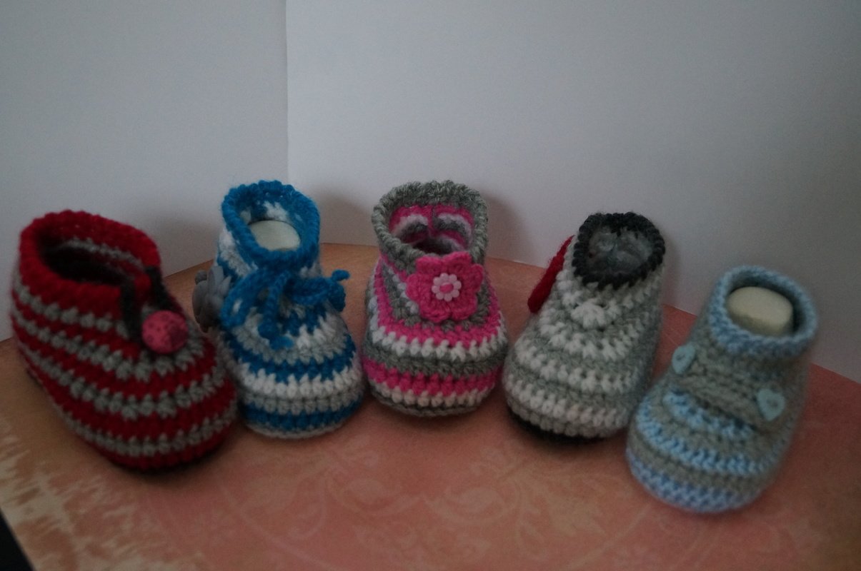 Die niedlichen Baby- Schuhe überzeugen sowohl durch die schöne Passform als auch durch die kinderleichte Herstellung und überdies ist noch beschrieben wie die Schühchen in 5 verschiedenen Variationen verziert werden können.
