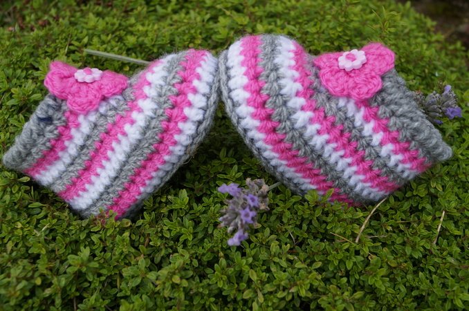 Ihr könnt die Schuhe natürlich gestreift mit 2, 3 oder mehr Farben häkeln oder auch einfarbig - oder passend zum neuen Lieblingsoutfit der kleinen.