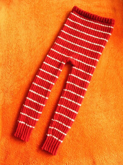 Durch das Strickmuster liegt die Leggins sehr gut und bequem am Körper an, und sie ist auch gut dehnbar. Kleinkinder passen also mit Windeln hinein und später im Kindergartenalter auch ohne. Die Leggins sitzt durch das Strickmuster immer perfekt am Körper. Die Beine wächst durch ein Bündchen mit, das zu Anfang umgeschlagen und dann Stück für Stück herausgelassen werden kann. Wenn dann irgendwann die Beine zu kurz werden, lässt sich das noch eine Weile durch Beinstulpen ausgleichen.