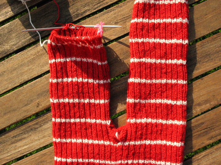Diese Leggins wird von oben nach unten in einem Stück gestrickt und kann komplett mit Rundnadeln gestrickt werden, auch an den Beinen! Sie hat außerdem fast keine Nähte. Lediglich unten am Zwickel entsteht eine kleine Naht und oben am Bündchen, dort wo der Gummi eingezogen wird. Wie der doppelte Bündchensaum zu Anfang gestrickt wird, erkläre ich in der Anleitung mit Fotos.