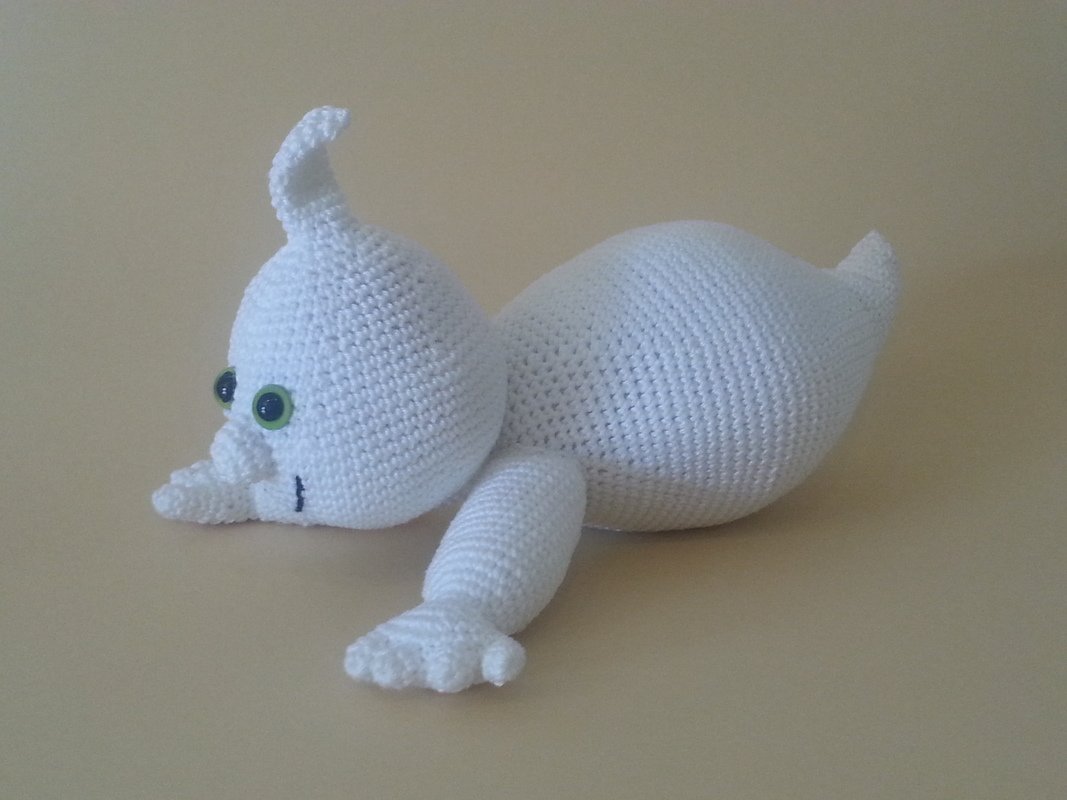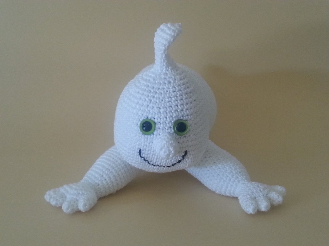 Nick Nachtgespenst wird, unter Verwendung des angegebenen Materials, 28 cm lang. Ich empfehle für das Nacharbeiten all meiner Modelle Baumwollgarn.