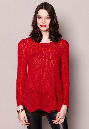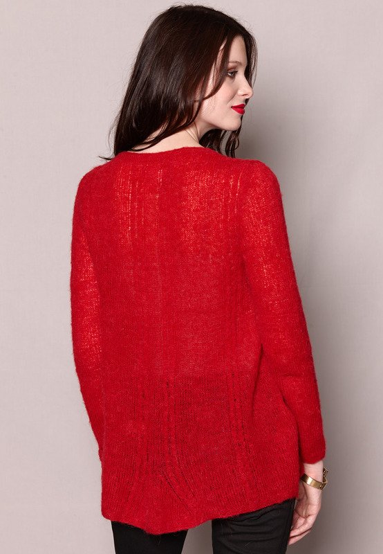 Power oft Red! Dieser Pulli ist nicht zu übersehen und kaum zu spüren! Das Superleichtgewicht (150g) stricken wir in einem luftigen Schnitt mit dekorativen Tulpenzöpfen.