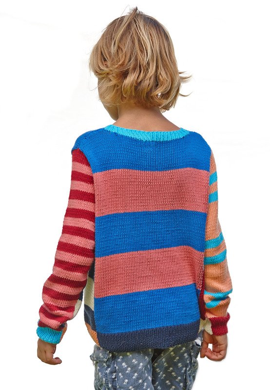 Lang Yarns "Baby Cotton" (100% Baumwolle, LL ca 180 m/50 g): ca 100 (100-150) g Marine Fb 0035, je ca 50 (50-100) g Royal Fb 0006 und Lachs Fb 0048 und je ca 50 g Natur Fb 0094, Dunkelrot Fb 0061, Pfirsich Fb 0028 und Türkis Fb 0079; addi-Stricknd 2,5 und 3 mm, addi-Rundstricknd 2,5 mm, 40 cm lang.