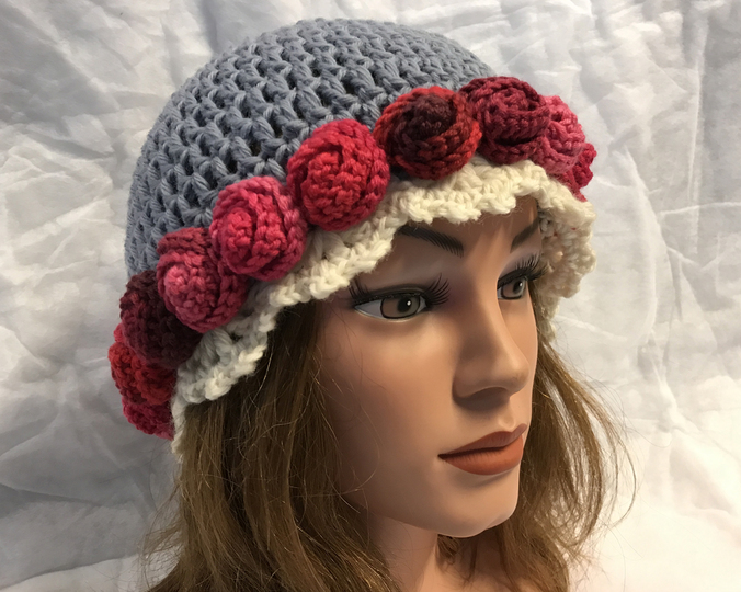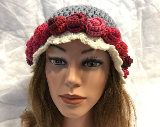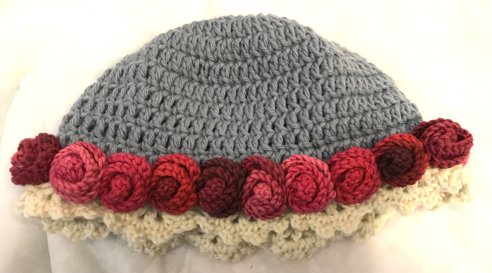 Die zauberhaften Mütze "Rosenglück" sehen nicht nur endzückend aus, sie sind auch sehr bequem und die weiße Abschlusskannte und die Rosenkette gibt der Mütze noch den richtigen romatischen LOOK.