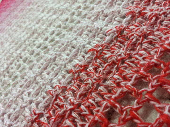 Verwendet habe ich dafür einen Bobbel aus Hochbauschacryl mit LL 700 und 4 fädig, ca. 191 g von Esquonic Farbverlaufsgarne!