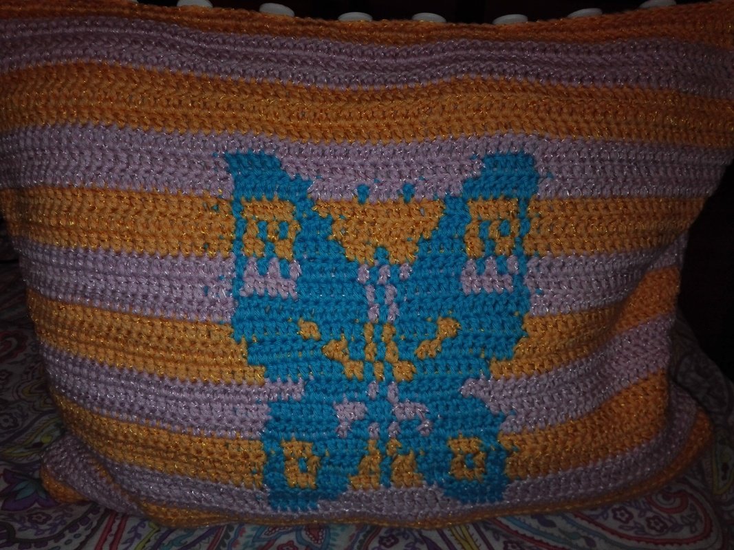 Dieser Polsterüberzug ist sehr leicht und schnell zum Häkeln.