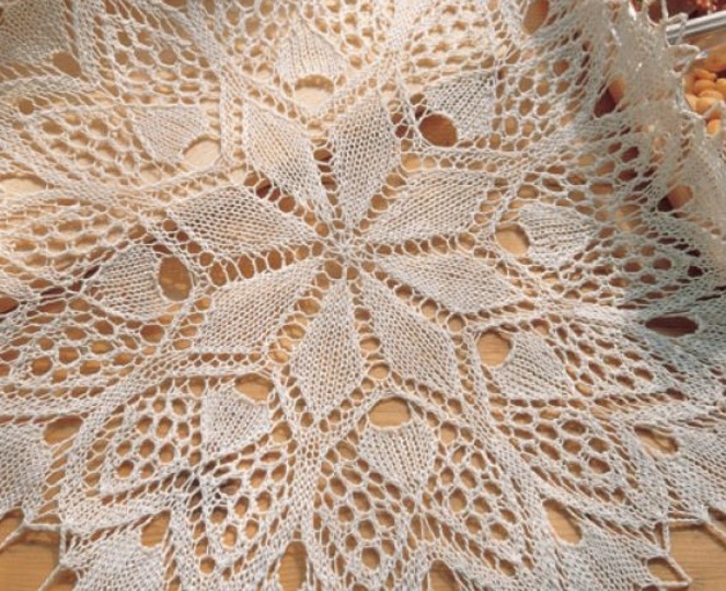 Die Anleitung umfasst eine Strickschrift und beinhaltet einen ausführlichen Lehrgang zum Kunststricken und zum Spannen von Deckchen