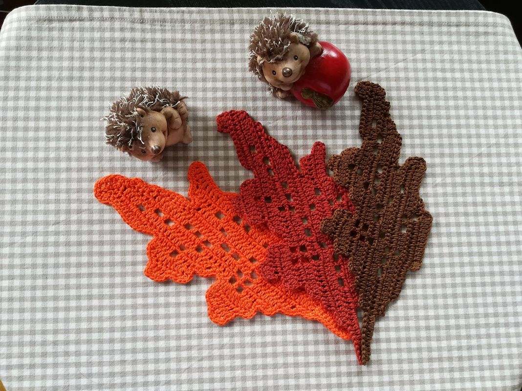 Das Herbstblatt eignet sich wunderbar für Wollreste.Es hat bei mir eine Größe von 28cm Länge und