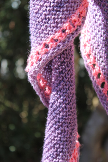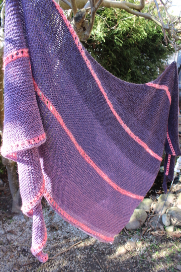 Das Tuch wird von der schmalen zur breiten Seite gestrickt und erhält seine Form durch Zu- und Abnahmen.