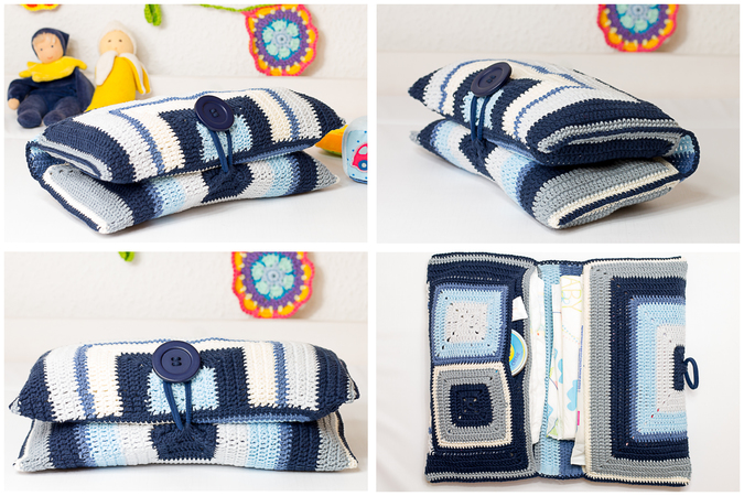 Die Tasche besteht fast nur aus Granny Squares. Du kannst sie einfarbig oder knallbunt machen, in deinen Lieblingsfarben oder die der Mama die du beschenken willst. Oder wie wäre es mit einer passenden Windeltasche zur Krabbeldecke oder zum Kinderwagen? Alles ist möglich!