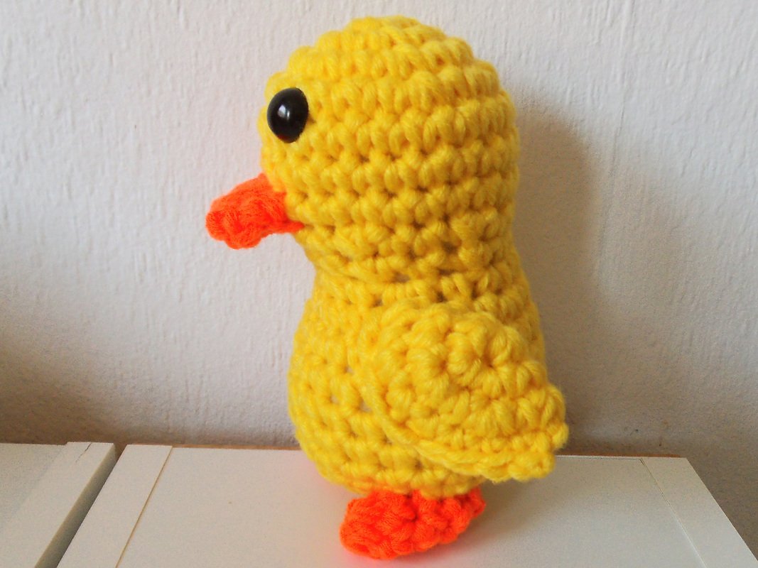 Ente Erna ist ein niedliches, kleines Kuscheltier mit treuem Blick, das auch von Anfängern gehäkelt werden kann.