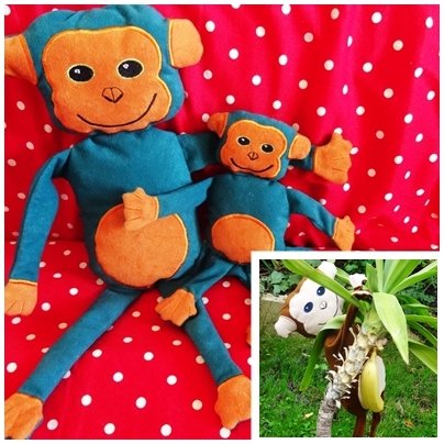 der süße Affe wird komplett mit der Stickmaschine hergestellt ihr braucht nur noch zwei Wendelöcher mit der Hand zunähen