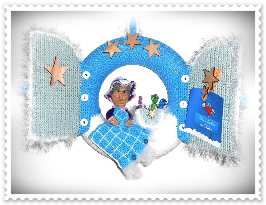 Als winterlicher Türkranz ist Frau Holle auch noch nach der Adventszeit eine schöne Deko an Tür oder Wand.