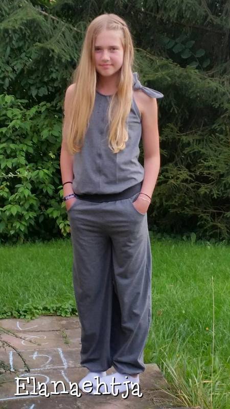 Charlotte goes „long“ … auf vielfachen Wunsch gibt es meinen Sommerjumpsuit nun auch mit einem langen Hosenteil für die kühlere Jahreszeit. Der Hosenteil ist dabei locker lässig geschnitten und wird unten am Hosenbein mit einem Gummizug zusammengenommen – so entsteht ein tolles Wohlfühl-Kleidungsstück! Nichts engt ein, nichts stört – und wie der Sommerschnitt wieder mit den Knoten als Hingucker auf der Schulter. Das Oberteil wird dabei doppellagig genäht und ist so ganz fix fertig – ohne Belege, ohne Bündchen =) . Garantiert auch für Nähanfänger geeignet.