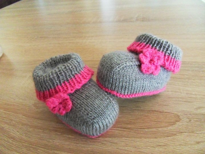 Die Schuhe werden zum Hauptteil gehäkelt nur das Bündchen wird gestrickt.