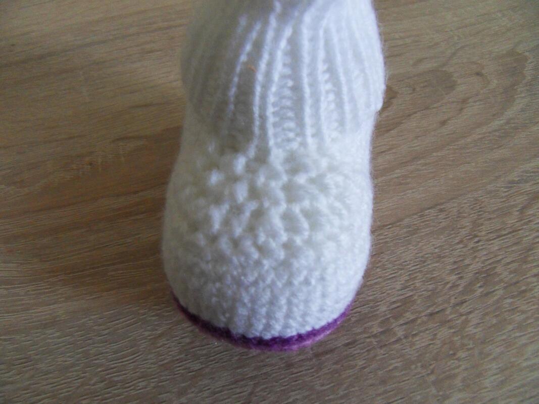Mein Frauchen strickt und häkelt sehr fest, wenn Du das nicht tust, könnten Deine Schühchen etwas größer werden.