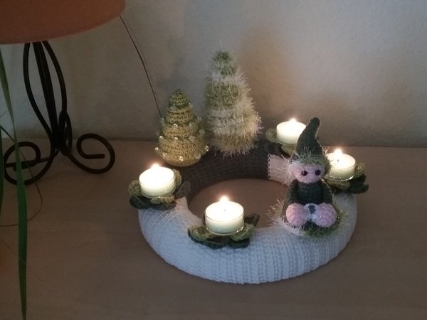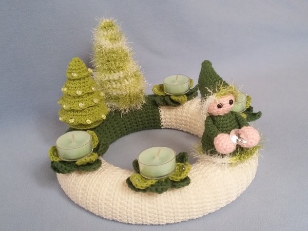 Wie wäre es einmal mit einem selbstgehäkeltem Adventskranz in wunderschönen Grüntönen?