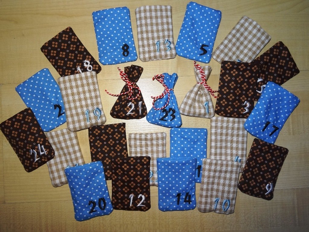 süße Adventskalender Säckchen schnell mit der Stickmaschine genäht ☺ und mit Zahlen bestickt